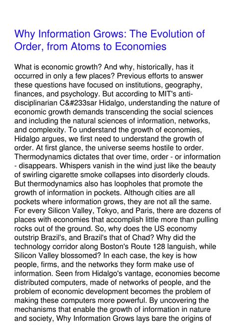 Reading Why Information Grows: The Evolution of Order, from Atoms to Economies Doc Google eBookstore